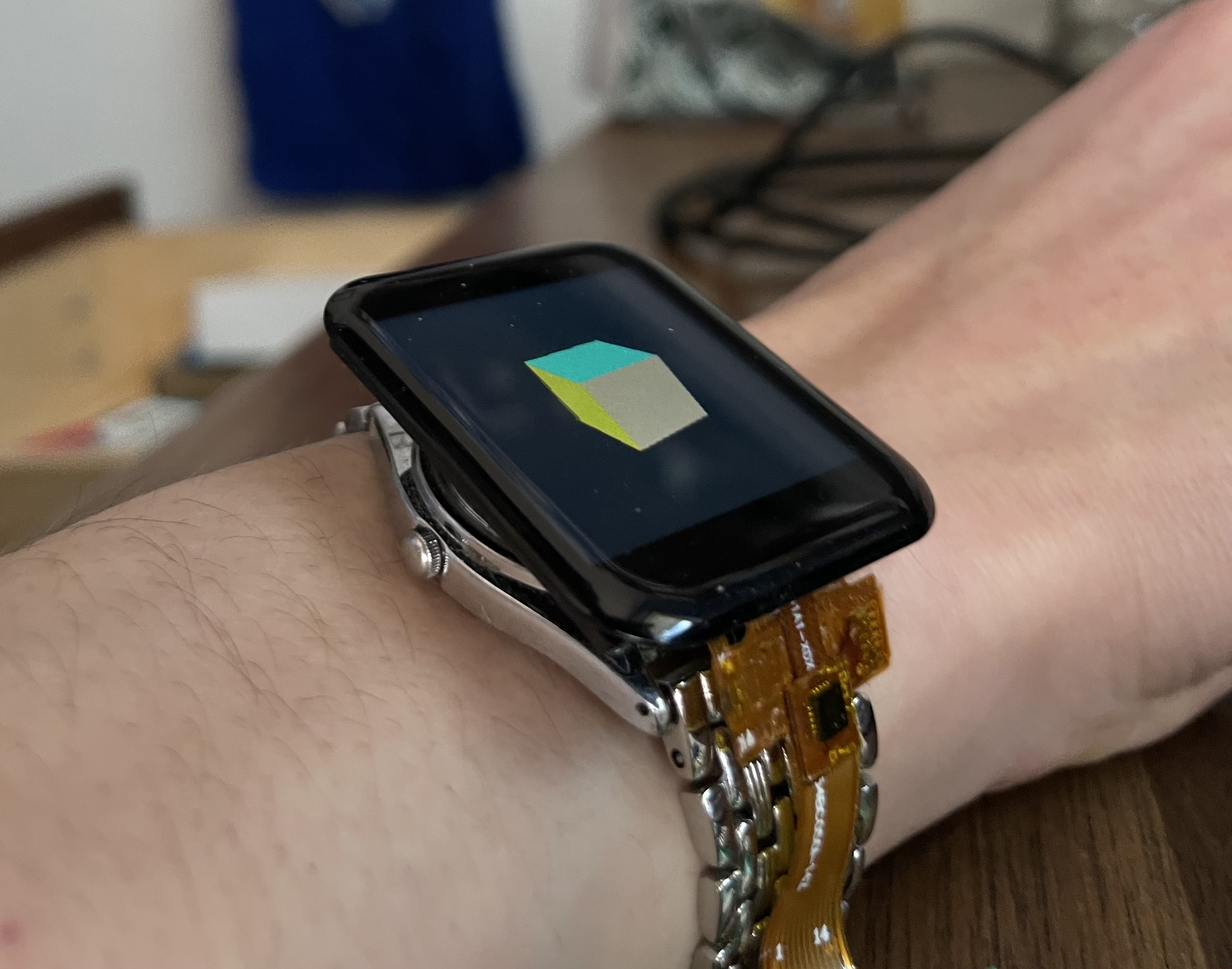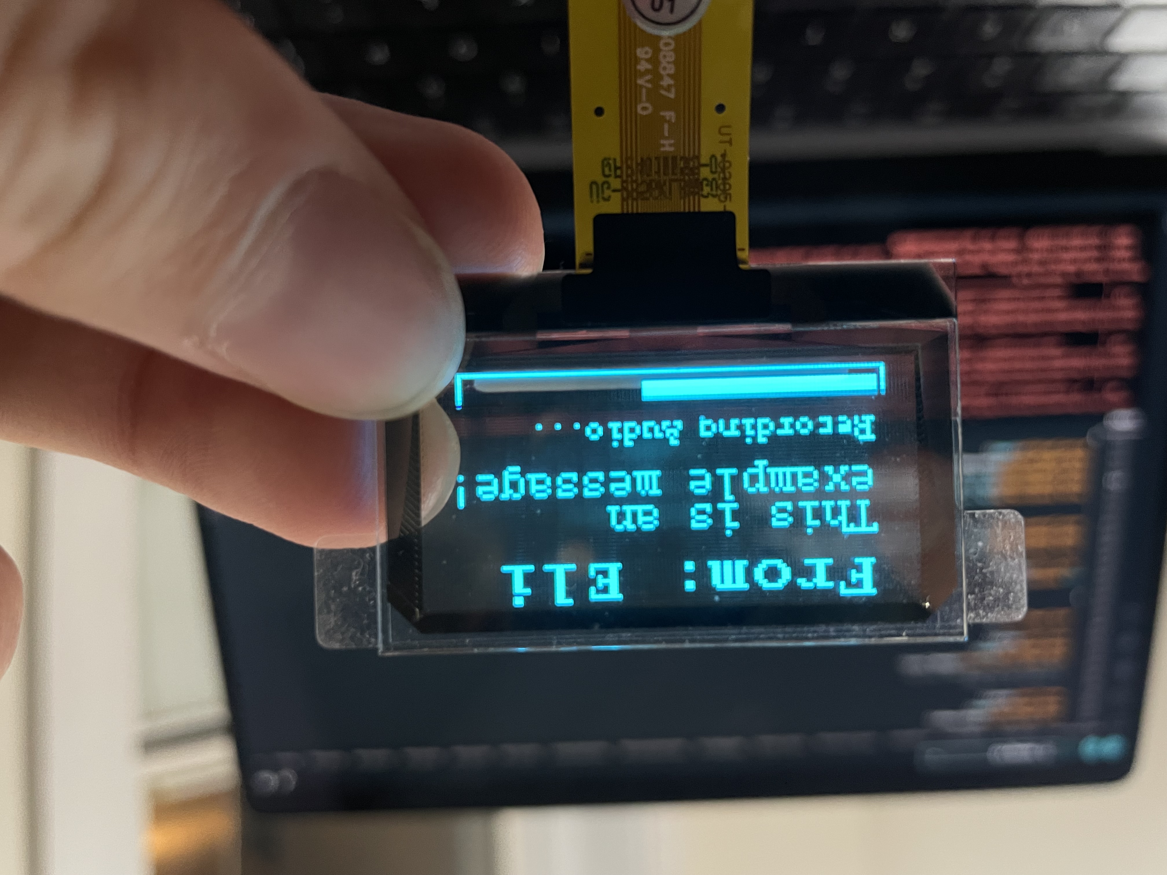 A little multifunction clear OLED display prototype watch with custom graphics, a menu, and field recorder capabilities through a little peripheral MEMS microphone.