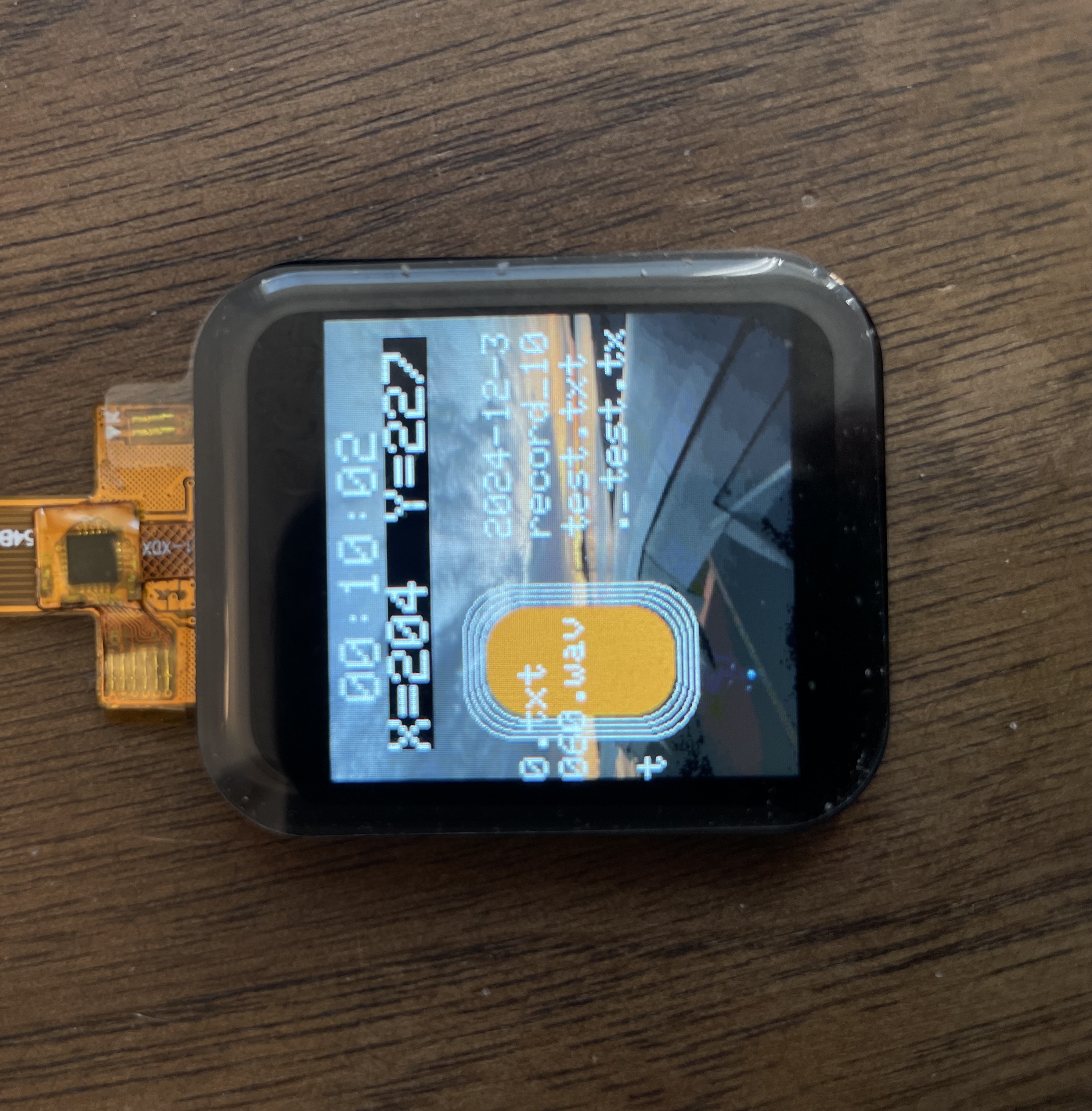 To interface with the watch, the cube on the screen is rotated to a color of choice and selected. This brings up implemented functionalities, audio recording and file management on the SD card.