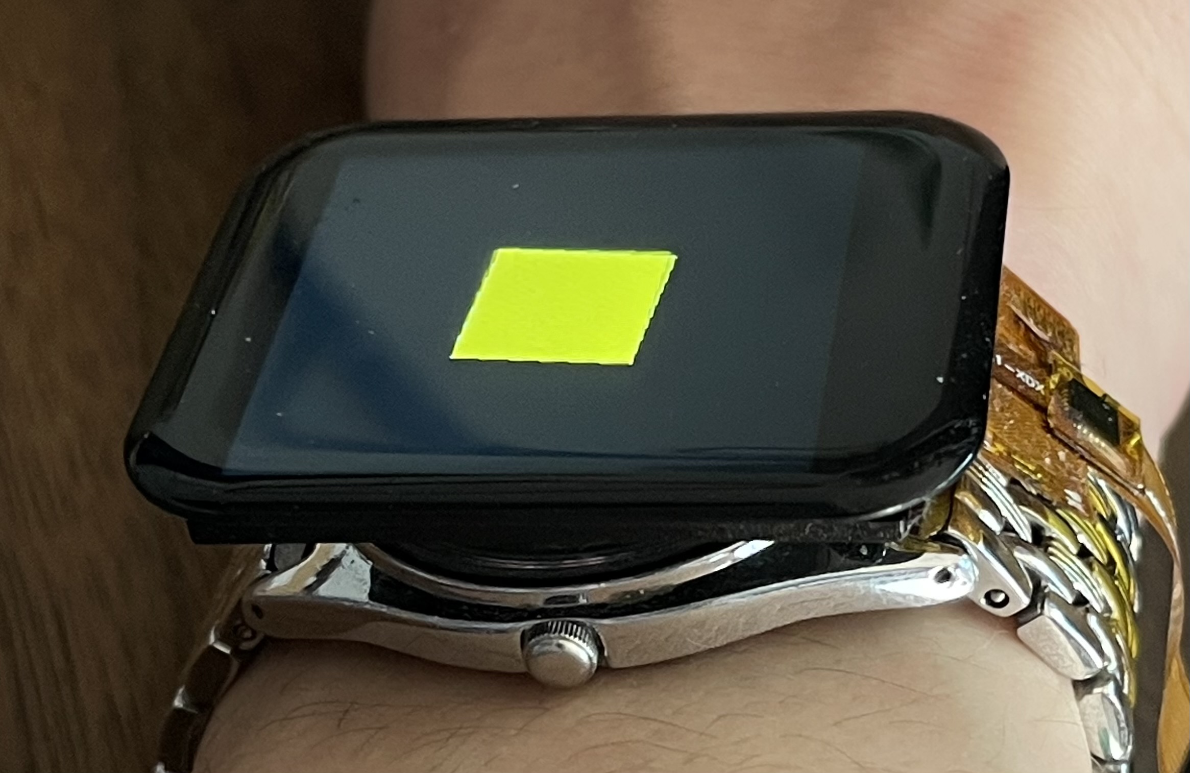 The watch is designed to be compatible with standard watch bands and is built on an ESP32 S3 with an incredibly small size. The video displays the startup screen for the watch, a rotating cube in the center of the screen demonstrating the hardware DMA and fast graphics calculations optimized on the ESP32.
