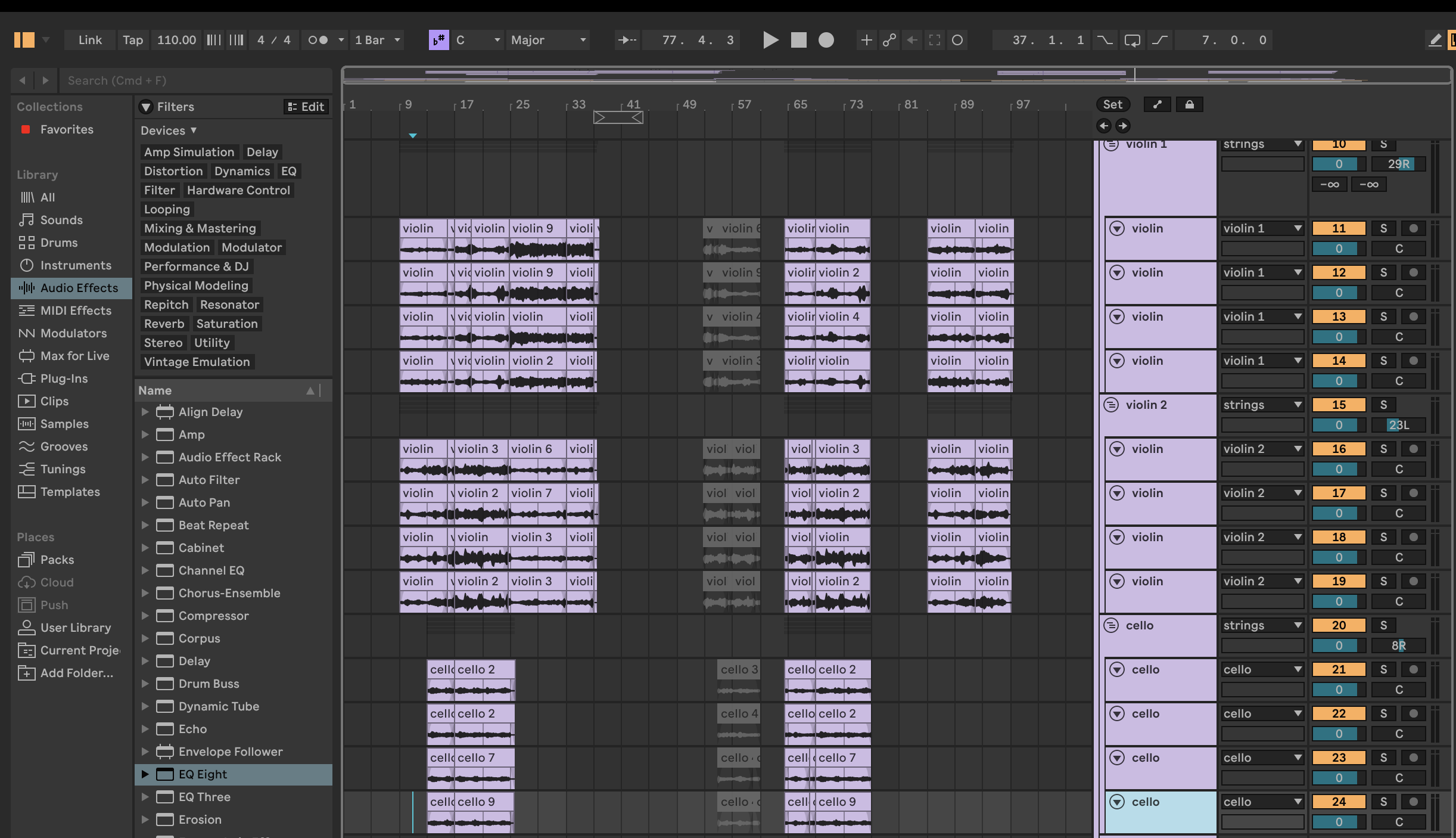 I mostly use Ableton to produce my own music, but I also use logic. The image on the right is an Ableton project for an orchestral piece I wrote.